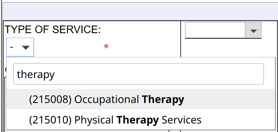 To search for an item in an options list:- Click into the options list field.